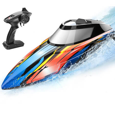 The ALPHAREV stands out with its modern, sporty look and bold color accents. It’s built with beginners in mind, offering easy-to-grip remote controls and a hull design that helps prevent flipping. The included carrying case adds a nice portability touch, especially for outdoor use near lakes or pools.