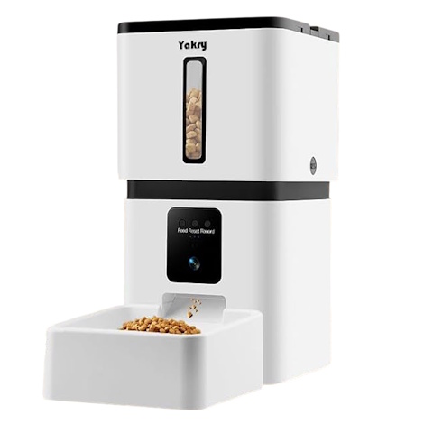 The Yakry smart pet feeder offers modern convenience with a built-in HD camera, two-way audio, and WiFi app control. It allows pet owners to remotely schedule feedings, monitor their pets in real-time, and interact using live voice. With precise portion control and a large capacity food tank, it’s ideal for dog or cat owners who want to stay connected even when away.